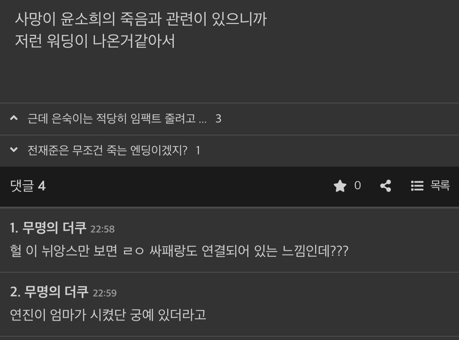 - "더글로리 시즌2 소희 죽음 연진이 엄마가 시켰단 궁예 있더라고"